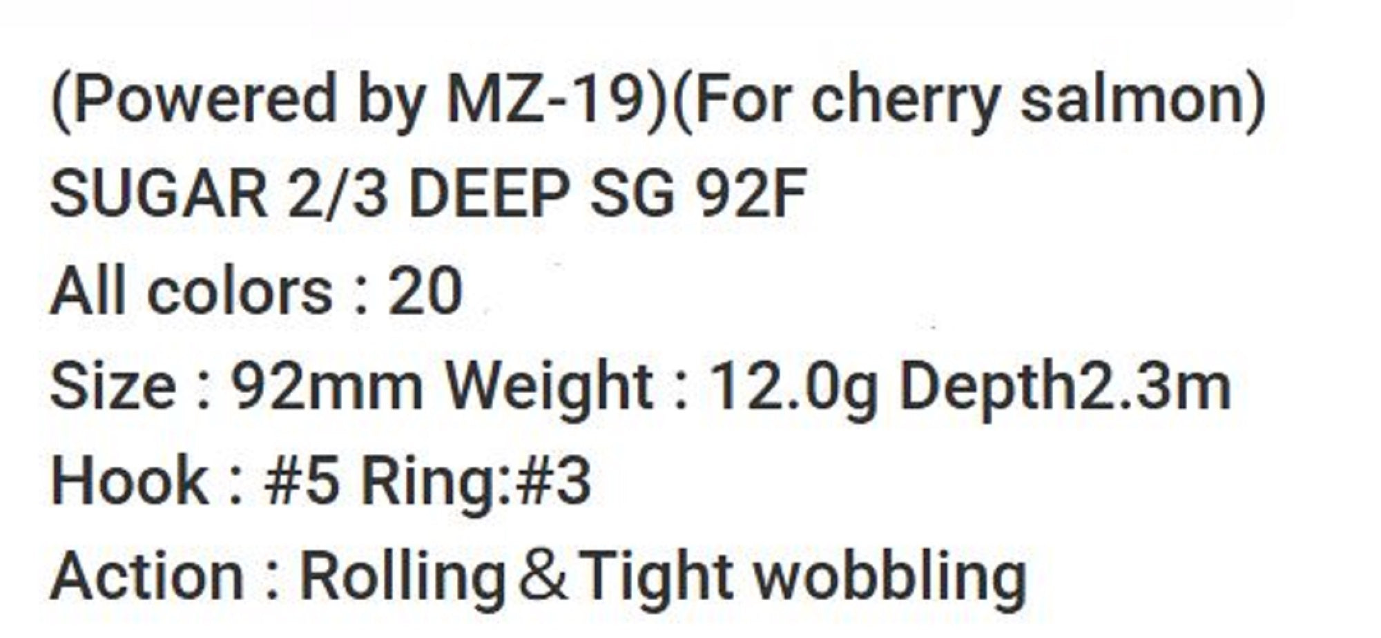Bassday Sugar 2/3 Deep SG 92F Floating Lure 12 grams M-14 (9055)