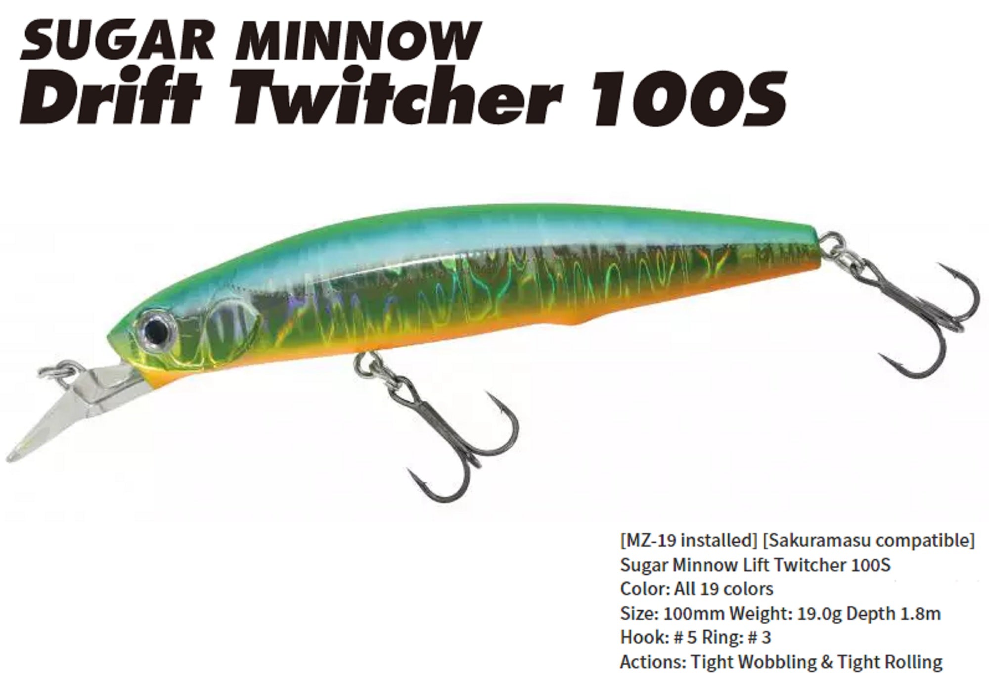 Bassday Sugar Minnow Drift Twitcher 100S Sinking Lure 19 grams P-502 (2554)