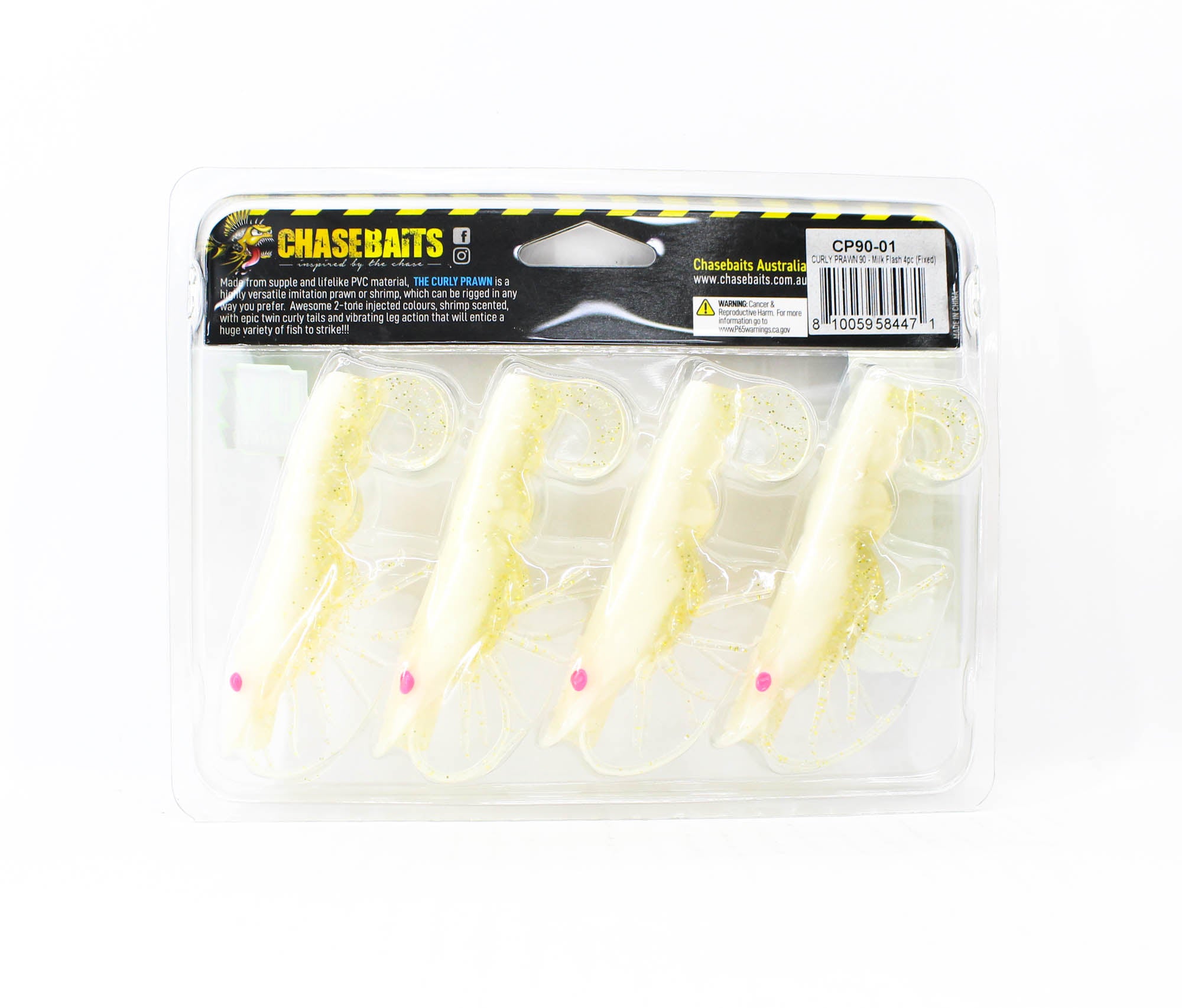 Chasebaits Curly Prawn 90 mm Sinking Lure 4/Pack Milk Flash (4471)