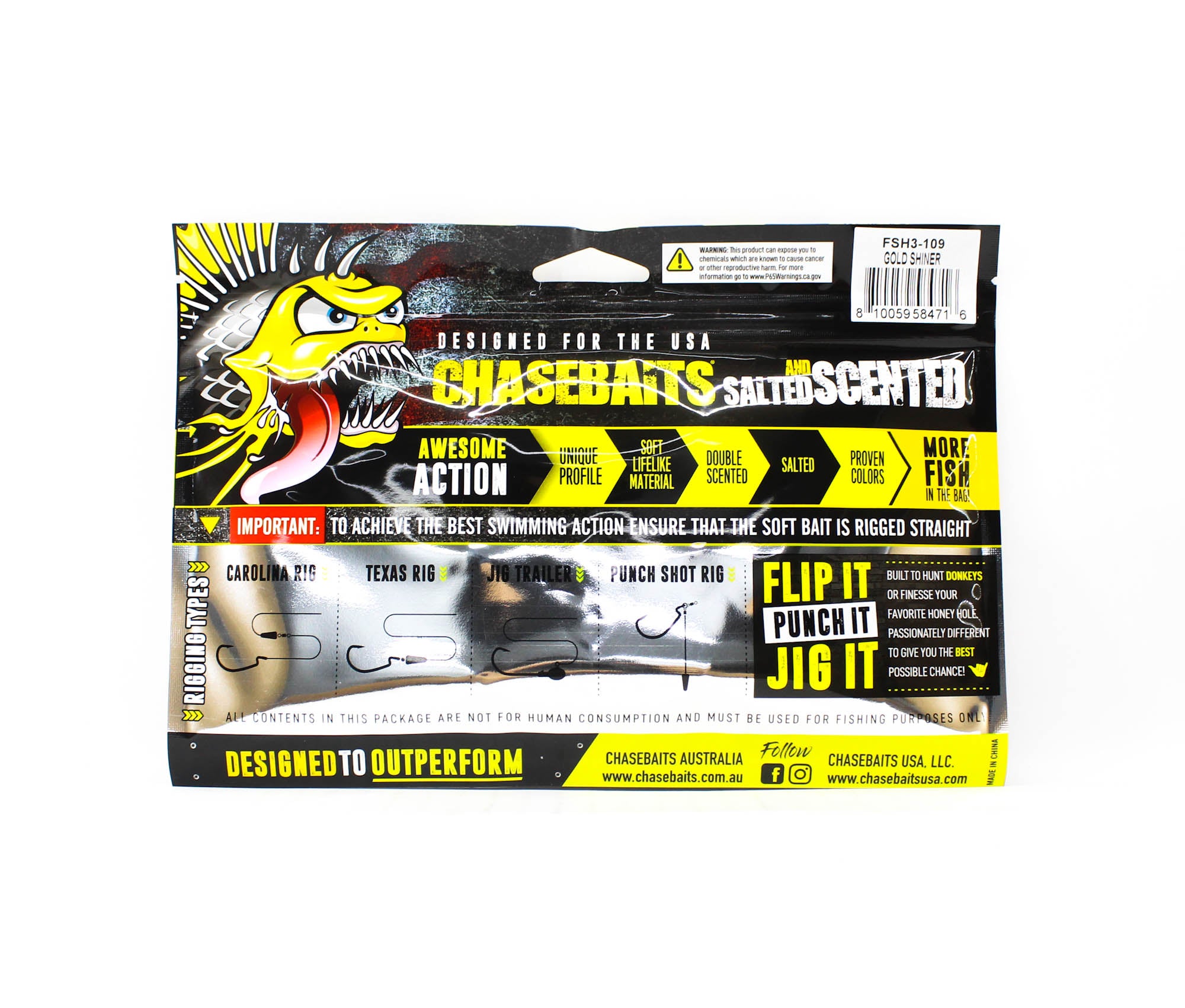 Chasebaits Flacid Shad 3inch Soft Lure 7/Pack Gold Shiner (4716)