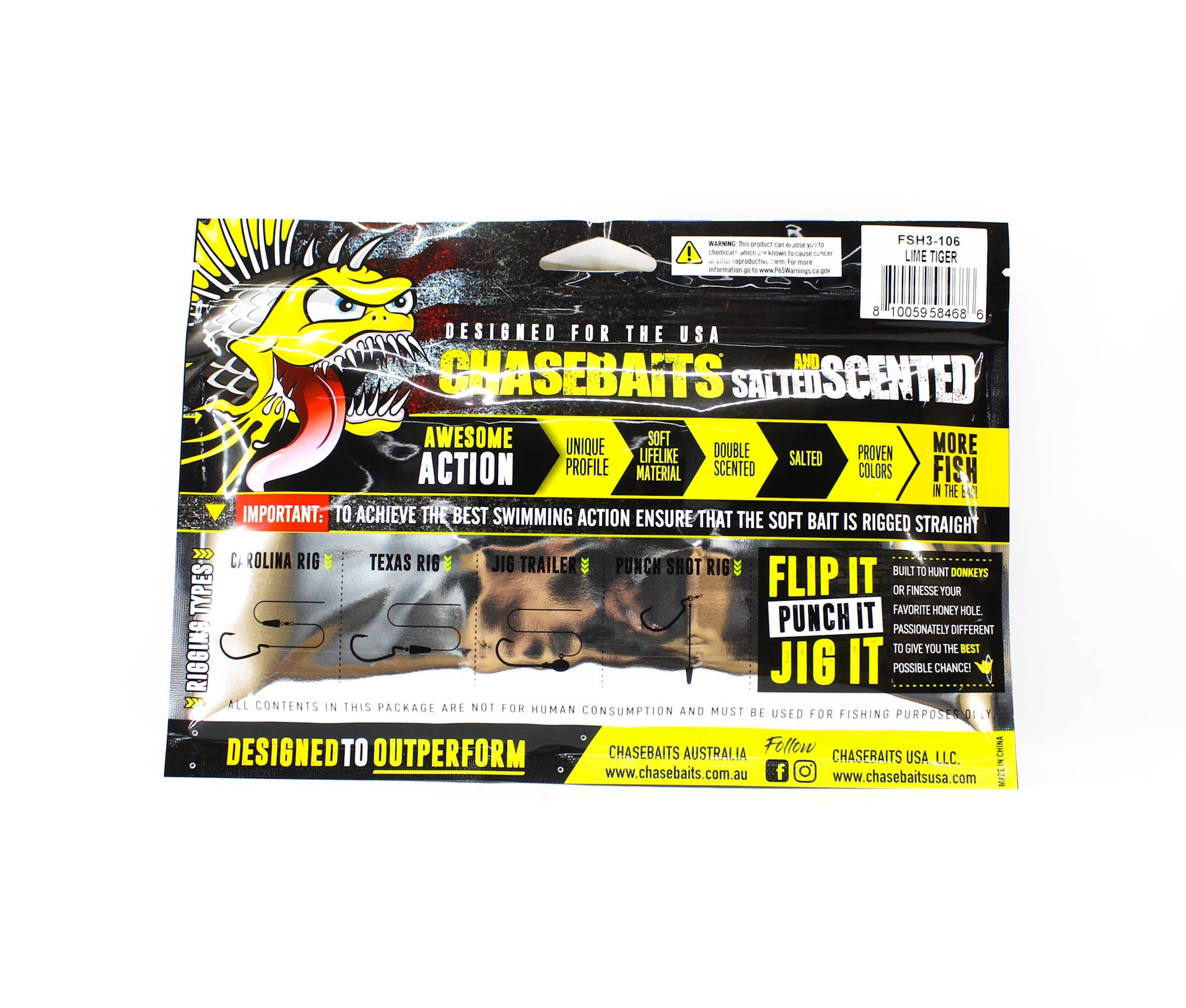 Chasebaits Flacid Shad 3inch Soft Lure 7/Pack Lime Tiger (4686)