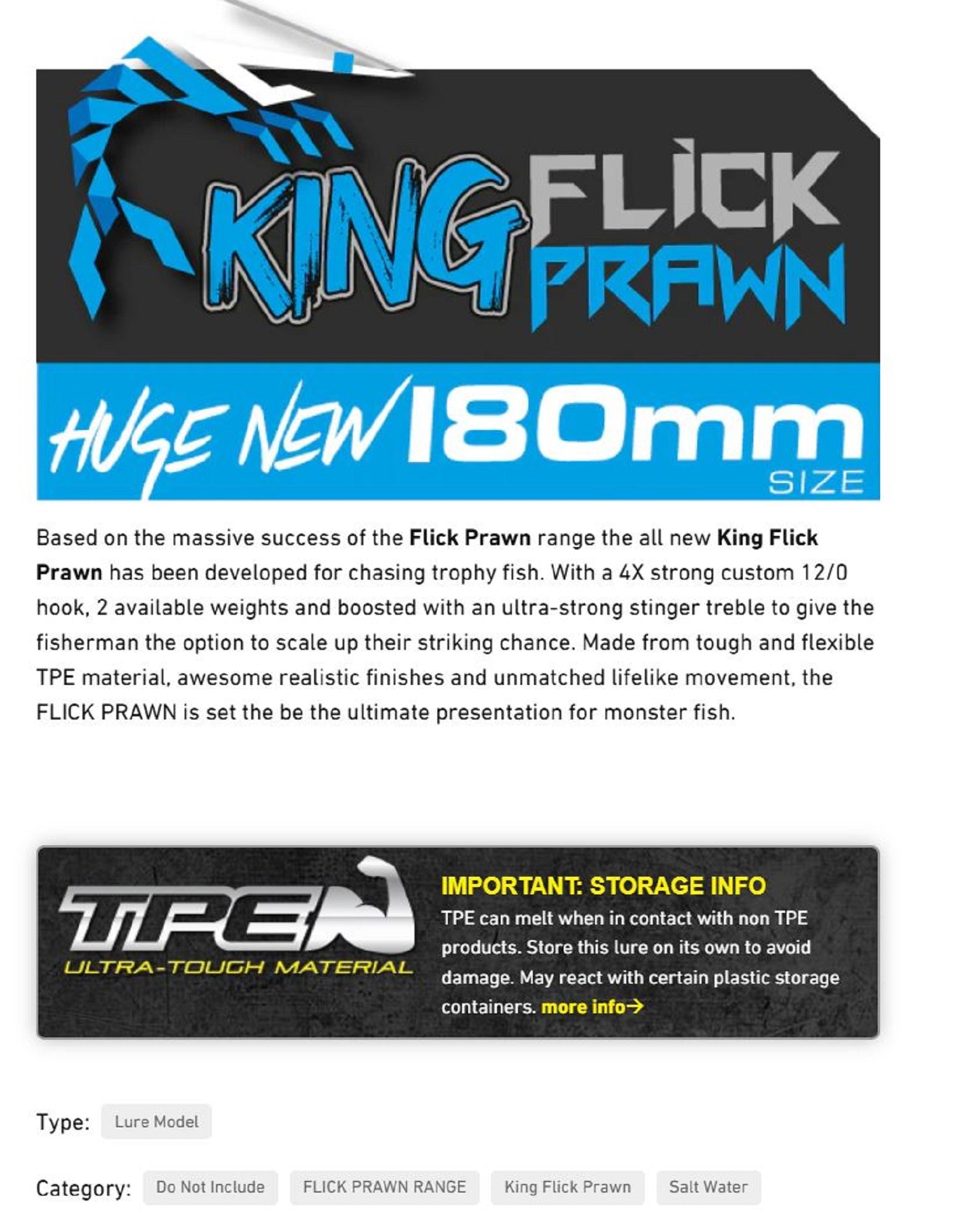 Chasebaits Flick Prawn King Heavy 180 mm 71 grams Sinking Lure 04 (6192)