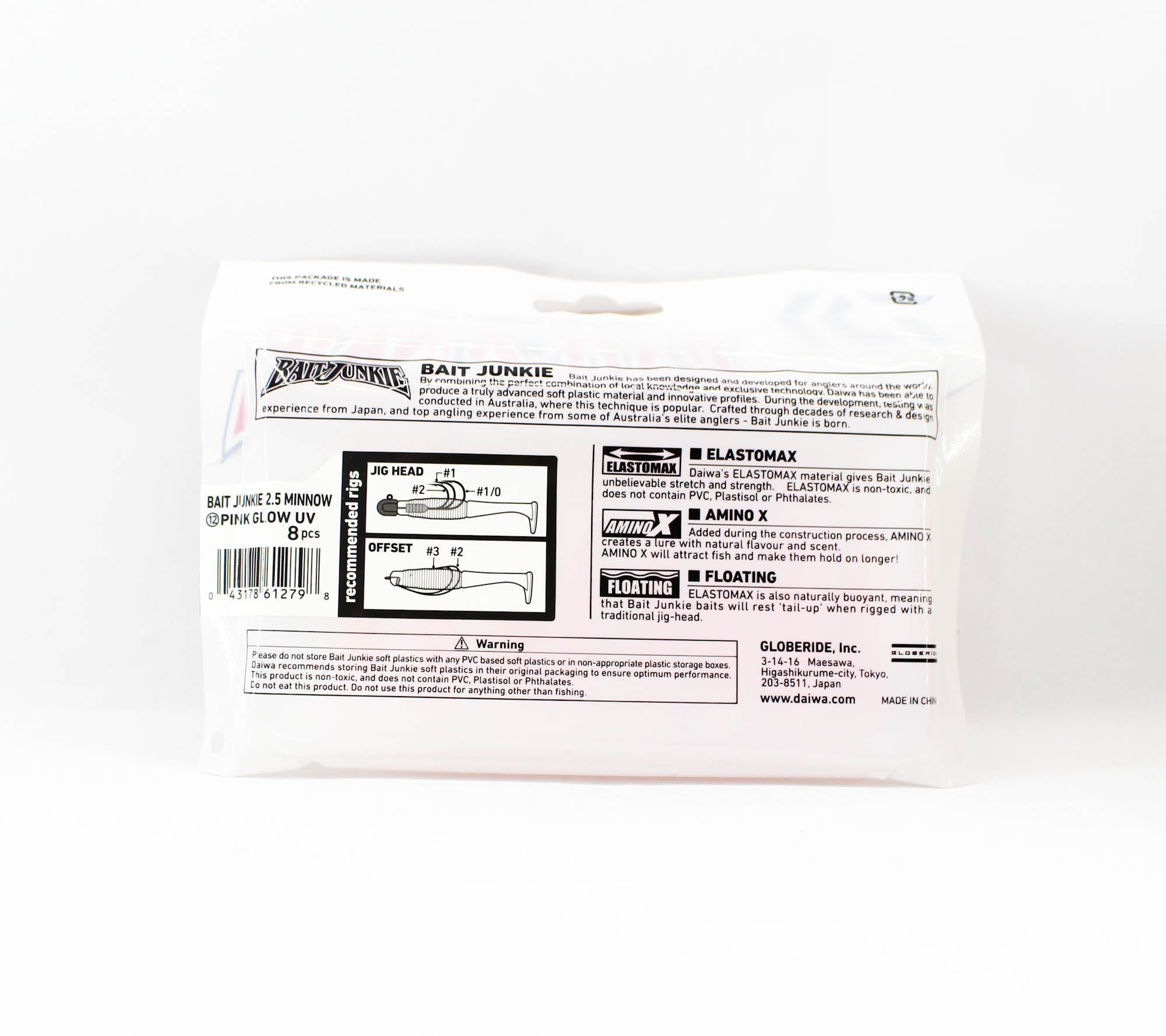 Daiwa Soft Lure Bait Junkie Minnow 2.5 Inch 8 per pack Pink Glow UV (2798)