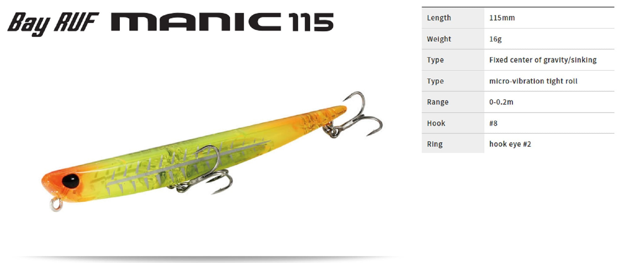 Duo Bay Ruf Manic 115 Pencil Sinking Lure GDN0251 (2202)