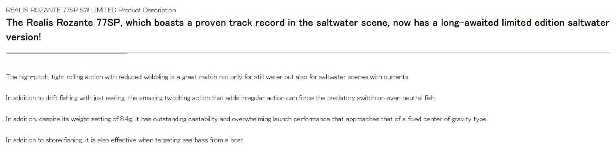 Model: Realis Rozante 77 SP SW