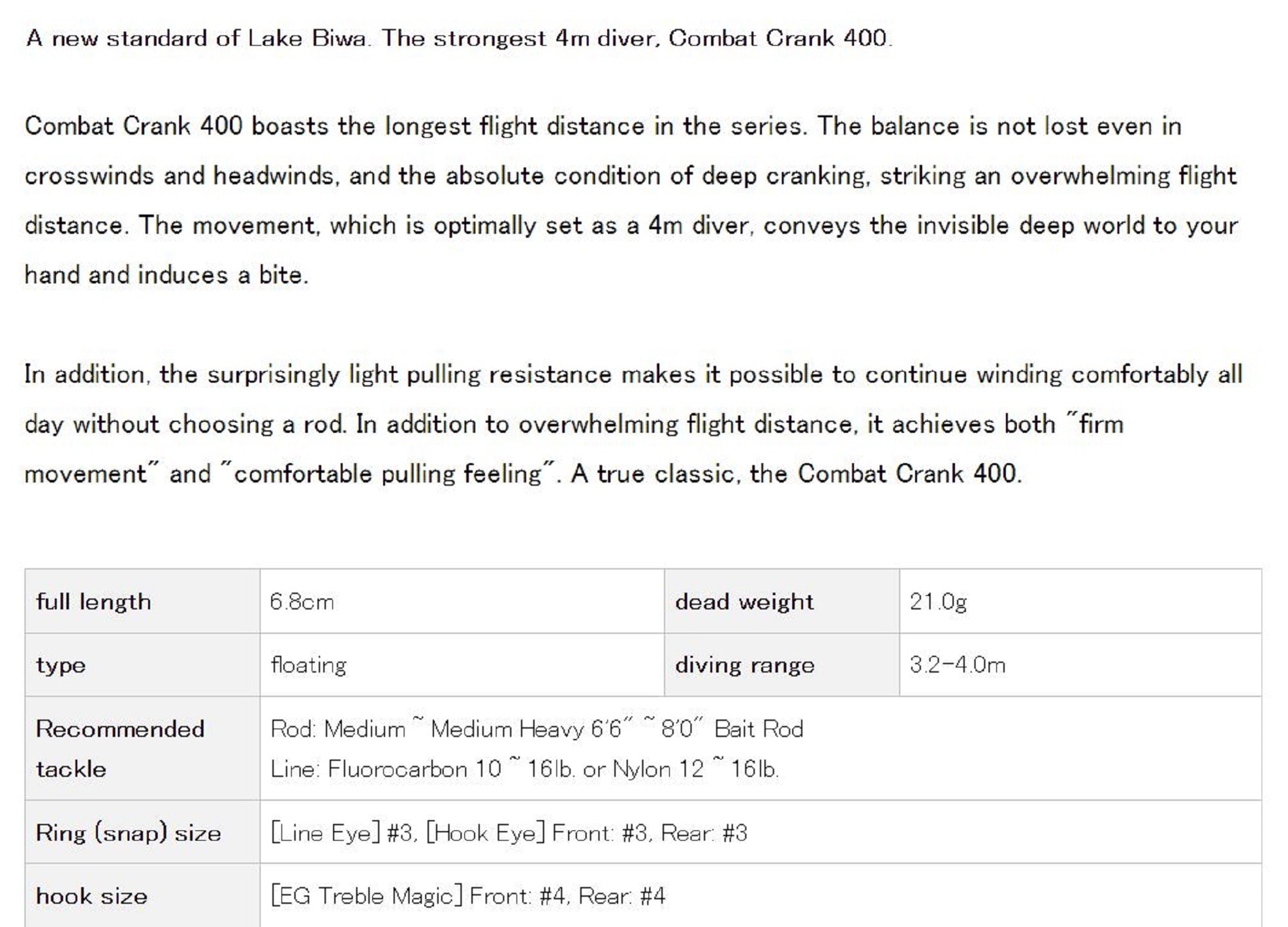 Item Type: Crank Bait