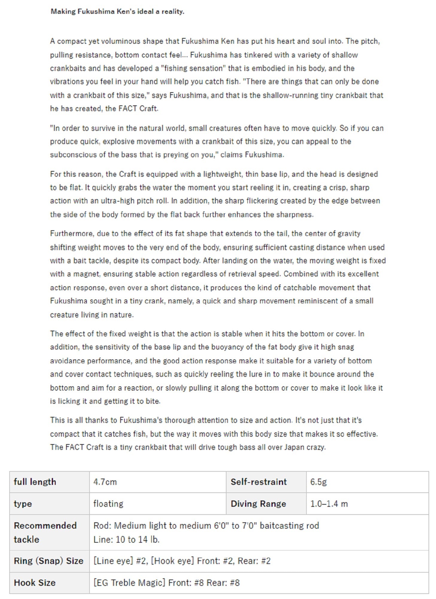 Evergreen Craft Crank Bait 47 mm 6.5 grams Floating Lure 28 (5764)