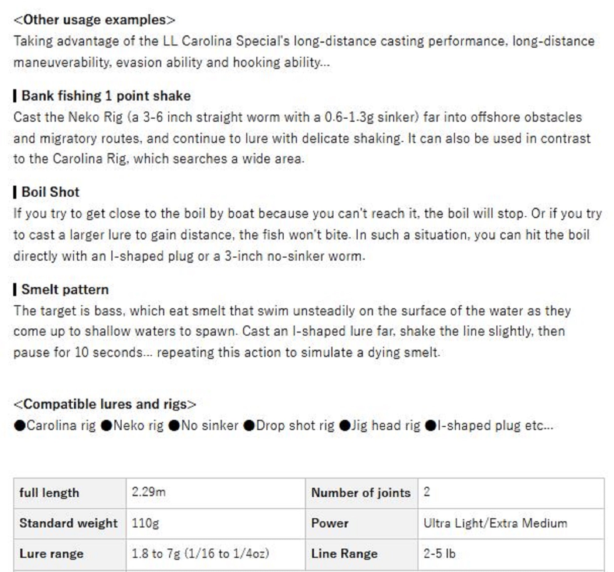 Lure: 1.8 - 7 grams