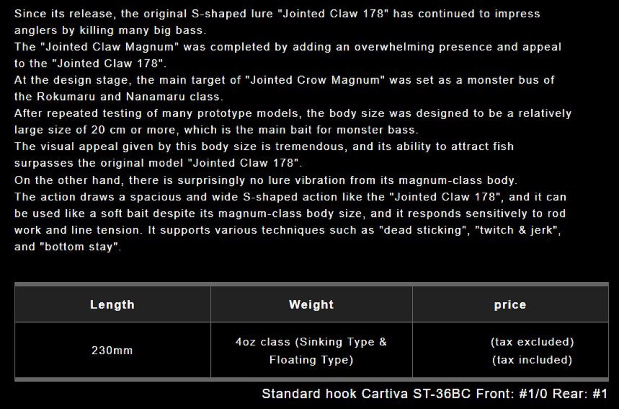 Gan Craft Jointed Claw 230 Magnum Floating Jointed Lure 09 (8077)