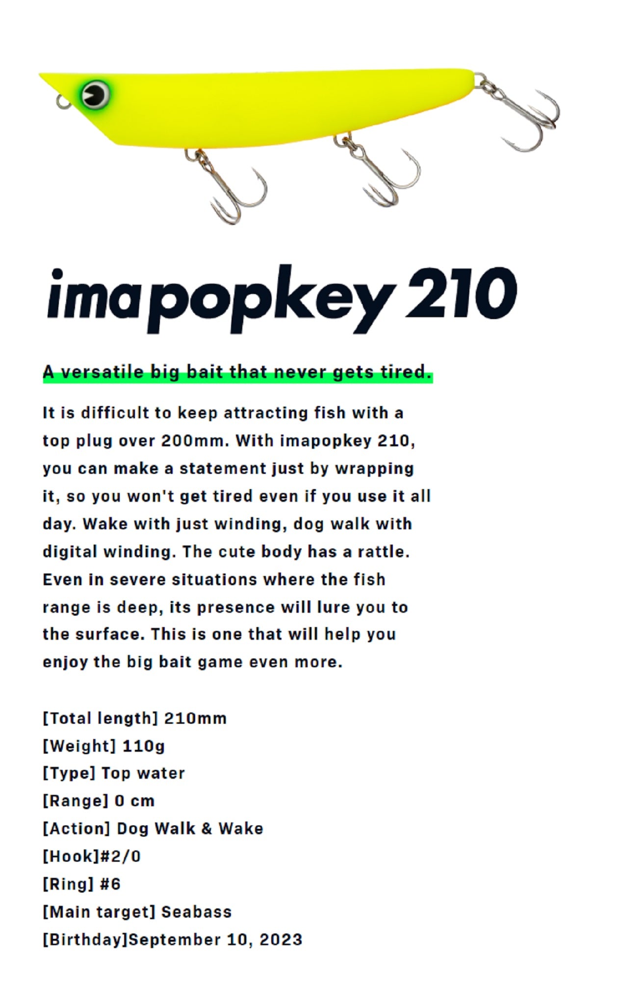 Ima Popkey 210 Pencil Floating Lure 008 (6819)