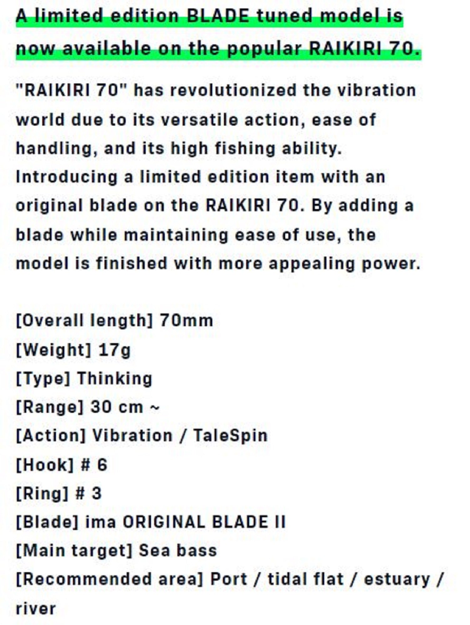 Model: Raikiri 70 Blade