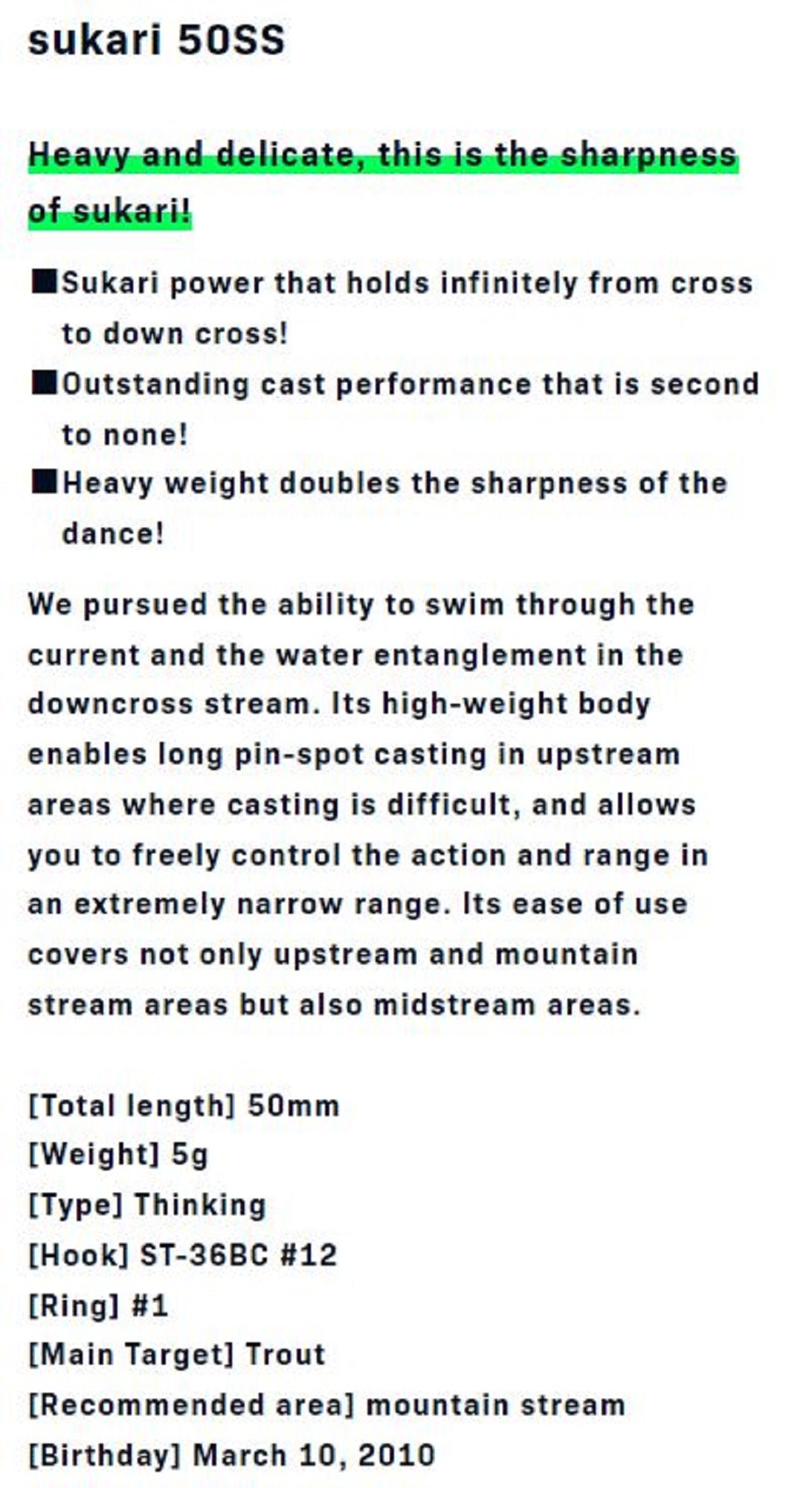 Ima Sukari 50SS Sinking Lure 102 (1356)