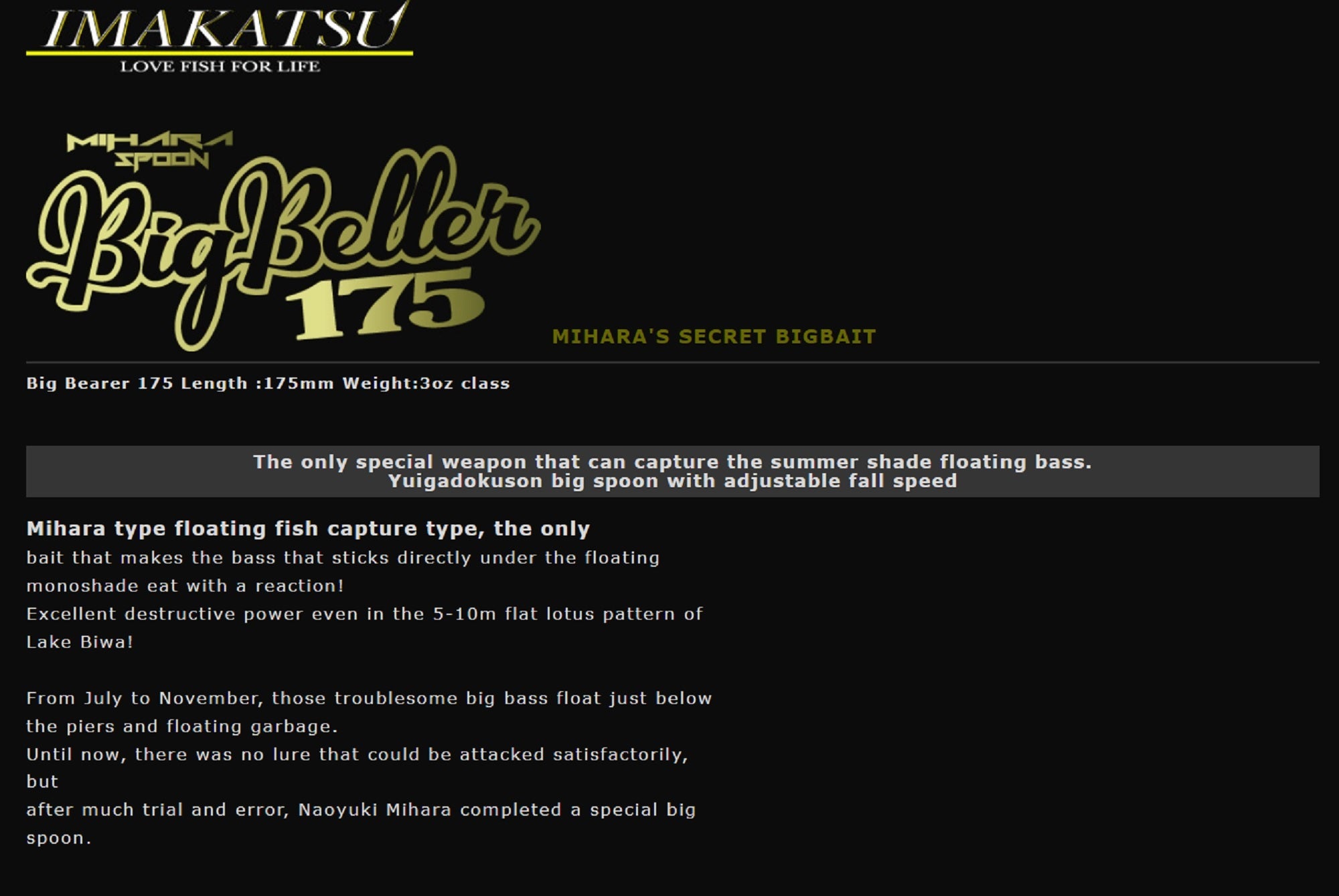 Imakatsu Mihara Spoon Big Beller 175mm 90g Sinking Lure #SP-008