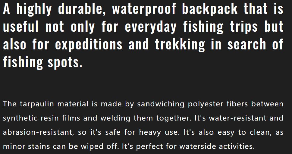Model: Jackall Bag Waterproof Backpack