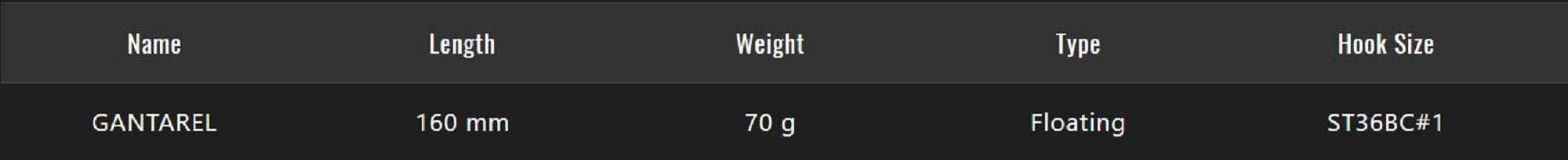 Jackall Gantarel 160 mm 70 grams Sinking Lure Chart Back Bluegill (7906)