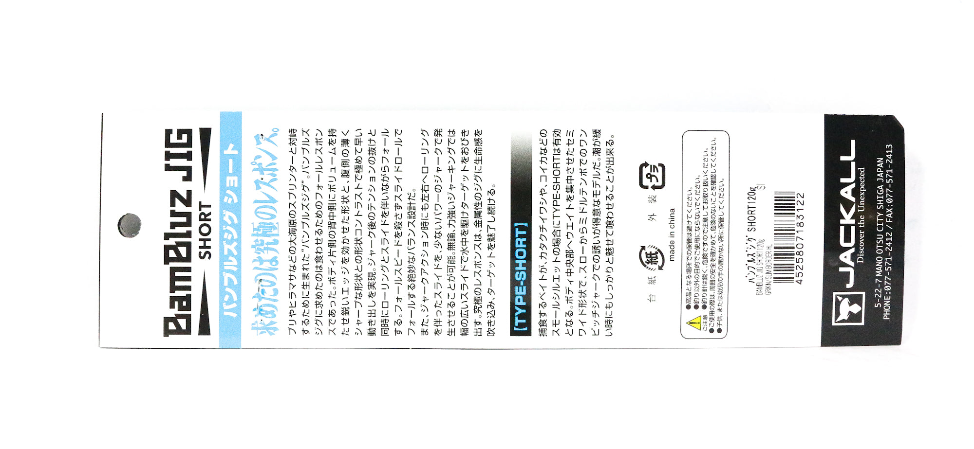 Jackall Metal Jig Bambluz Short 120 grams Grikin Slim Border HL (3122)