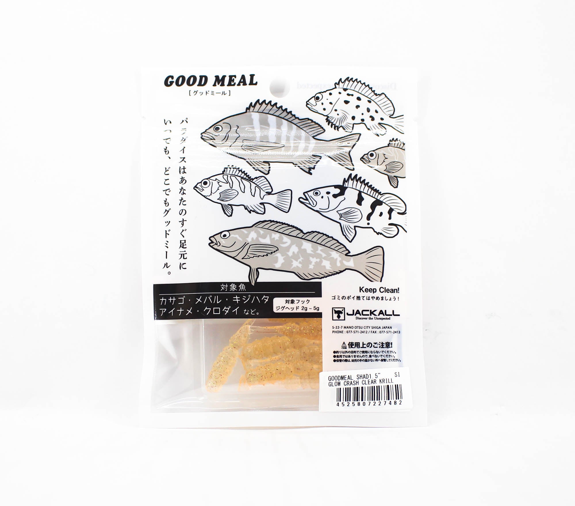 Jackall Soft Lure Good Meal Shad 1.5 Inches Glow Crash Clear Krill (7482)