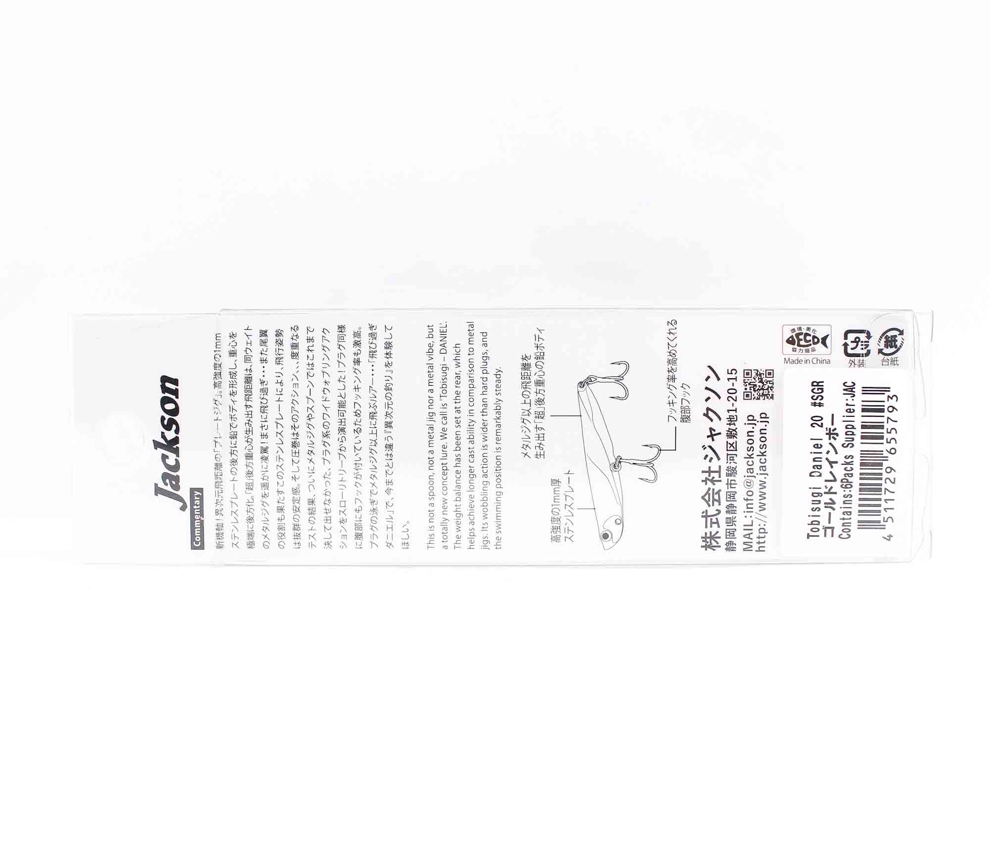 Jackson Tobisugi Daniel Vibration 20 grams 67 mm Sinking Lure SGR (5793)
