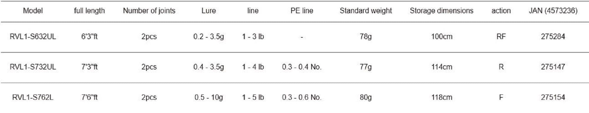 Lure: 0.4 - 3.5 grams