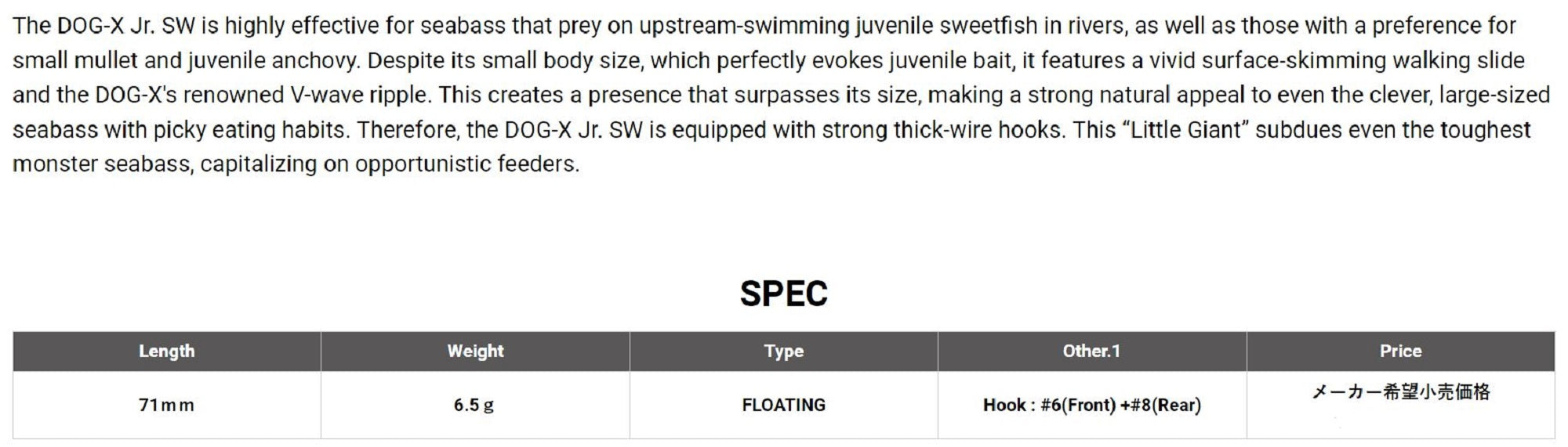 Megabass Dog X JR SW 71 mm 6.5 grams Floating Lure DD Clear Inakko (2115)