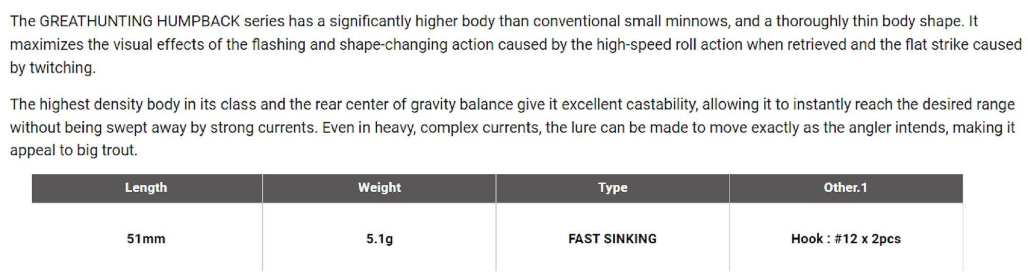 Megabass GH 51 Humpback FS Sinking Lure AL Sabi Yamame (4352)
