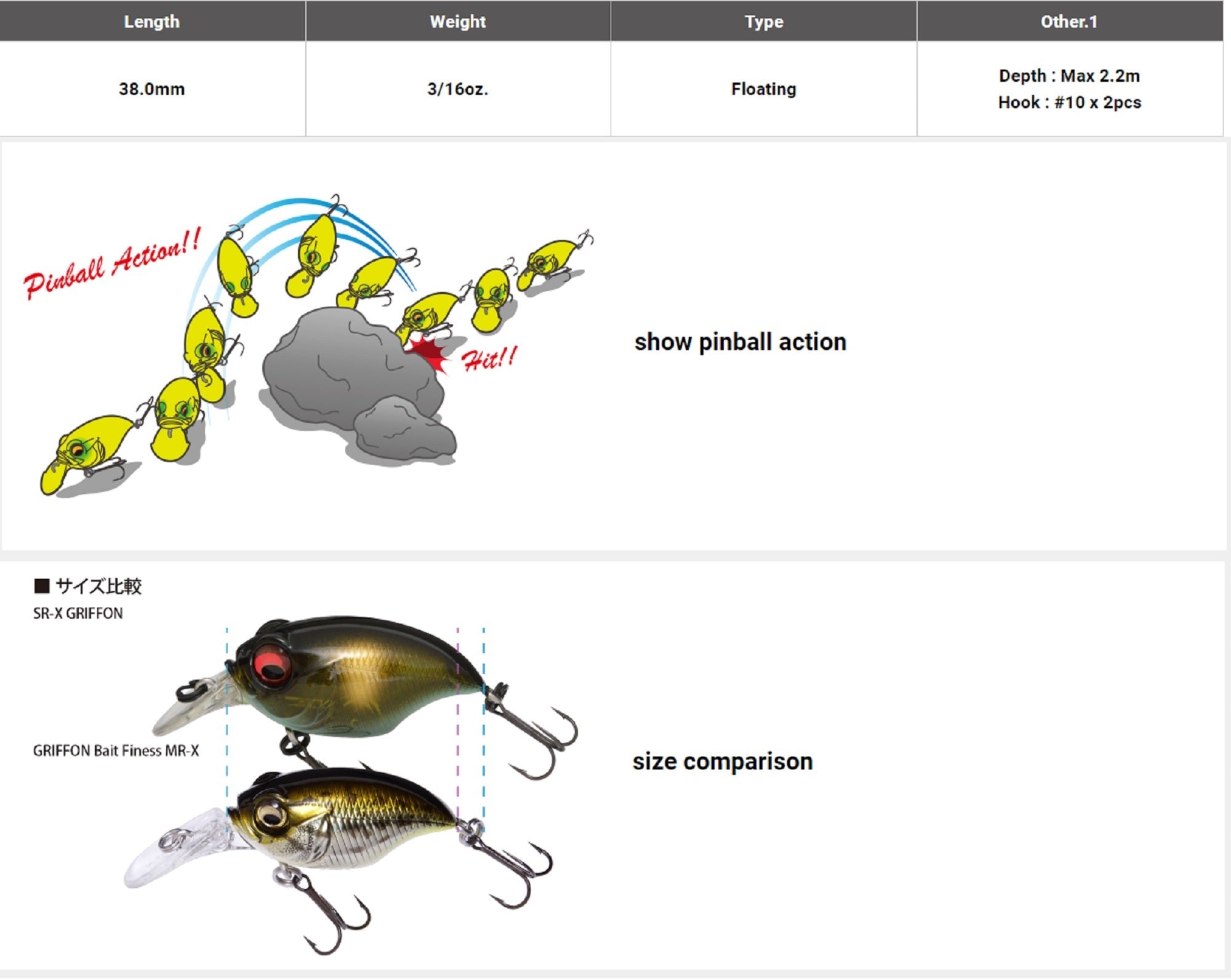Megabass Griffon Bait Finesse MRX 38 mm 3/16 oz Floating Lure Fire (4189)