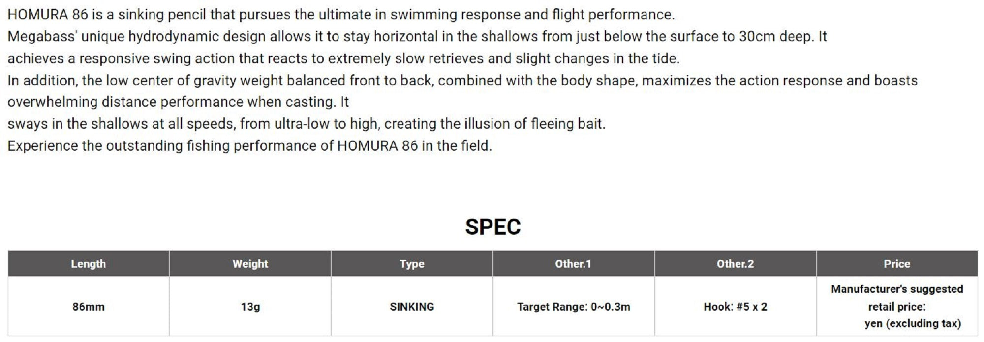 Megabass Homura 86 Sinking Lure GC Chiaya (5919)