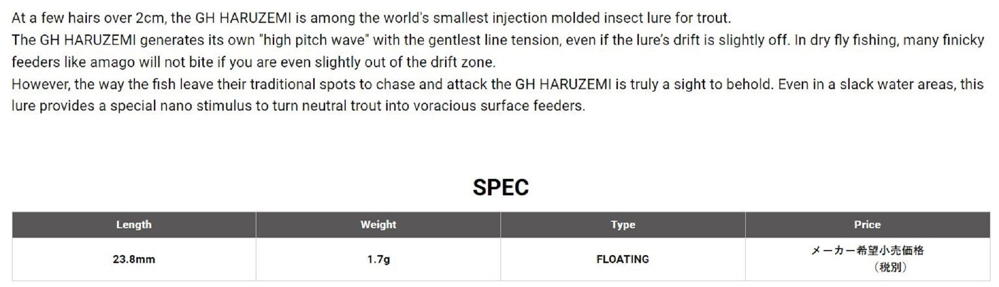 Megabass Nano Siglett GH 23.8 mm 1.7 grams Floating Lure Haruzemi (2384)