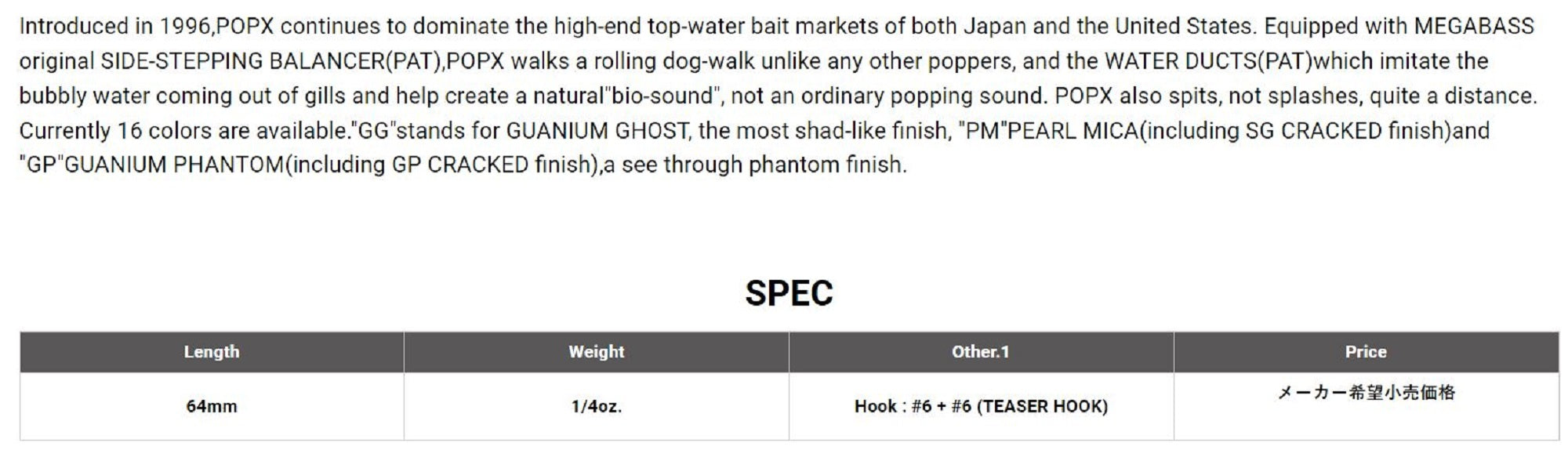 Megabass Pop X Standard 64 mm 7 grams Floating Lure Akatora (0905)