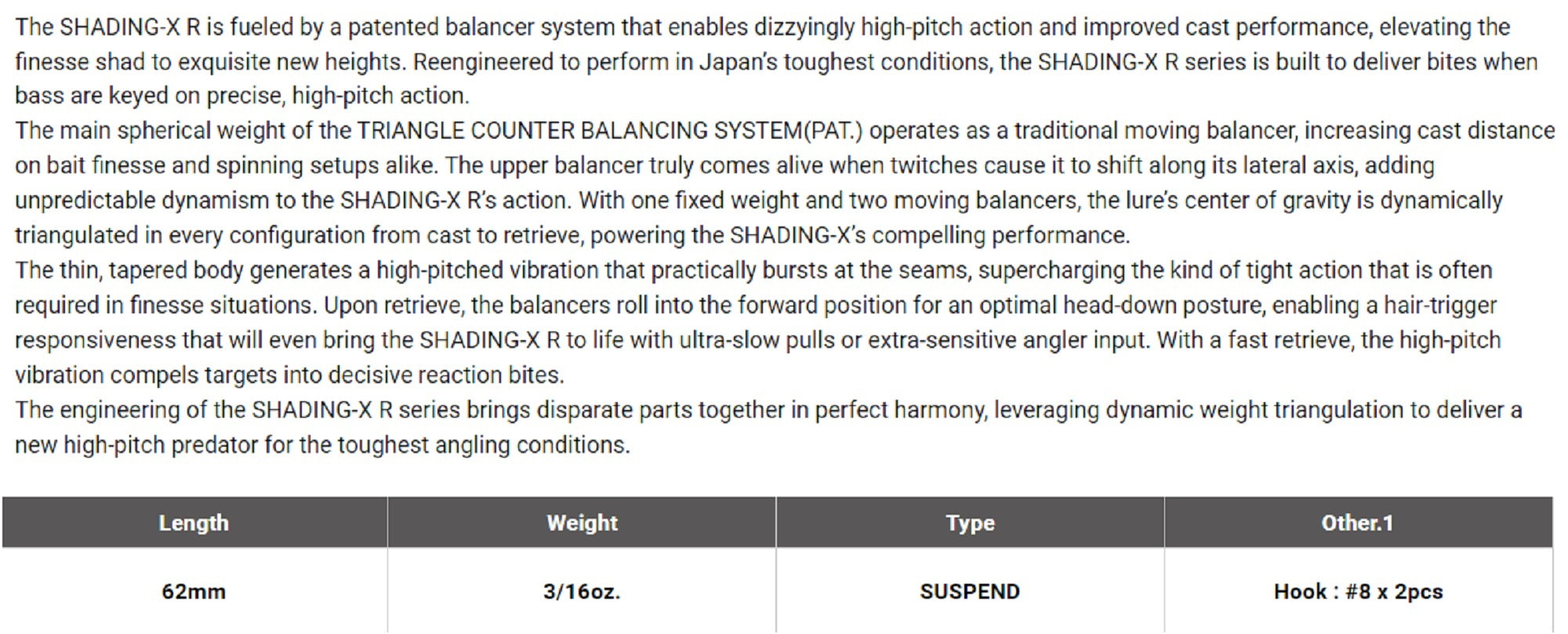 Model: Shading X R 62SP