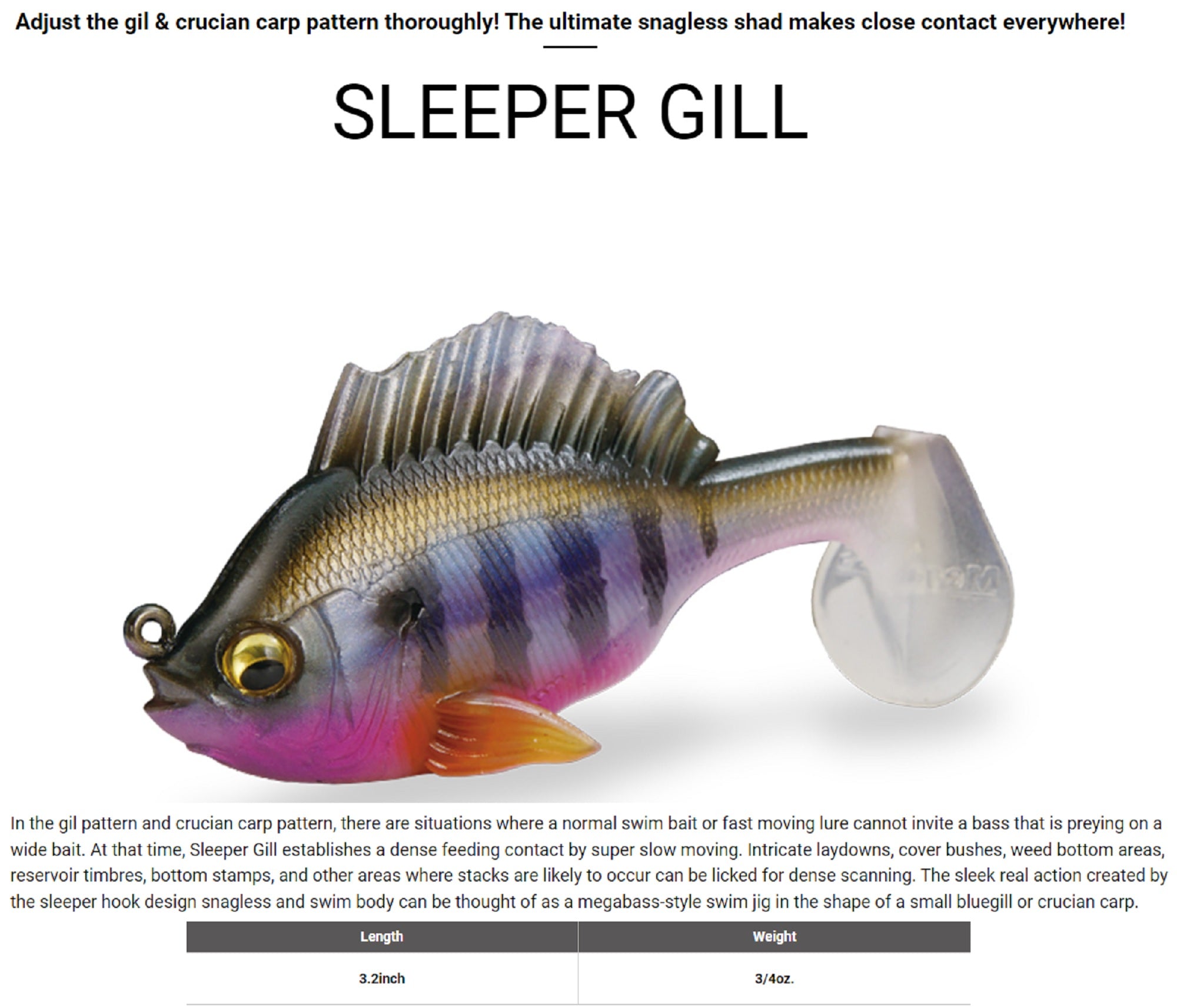 Megabass Soft Lure Sleeper Gill 3.2 Inch 3/4 oz Wild Gill (8776)
