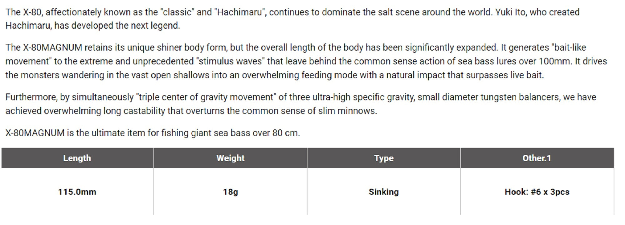 Megabass X-80 Magnum Sinking Lure GLX Akakin Iwashi (7123)