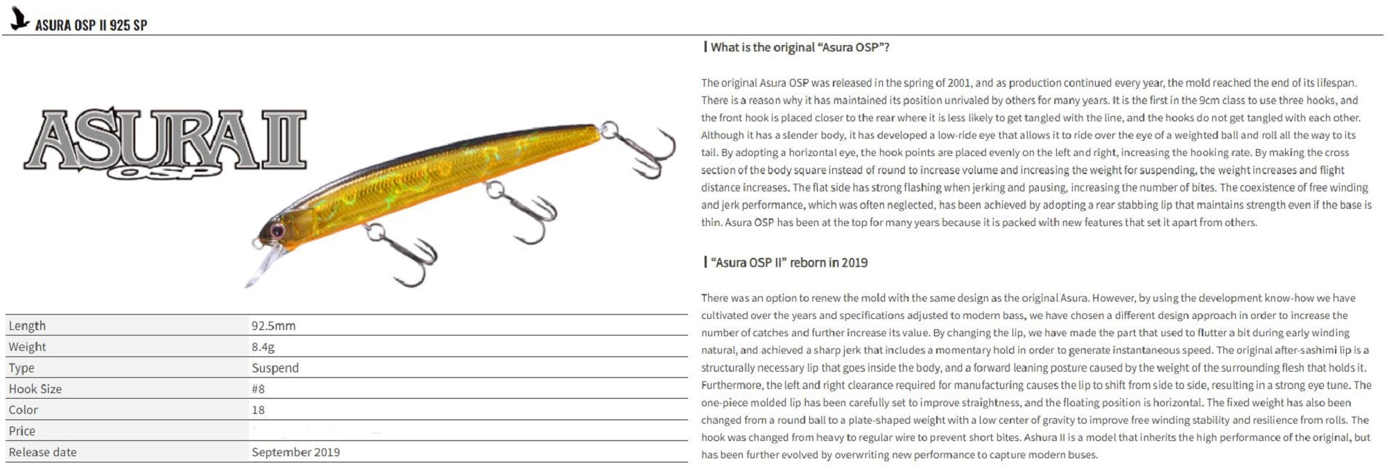 OSP Asura II 92.5 mm 8.4 grams Suspend Lure H-59 (7998)
