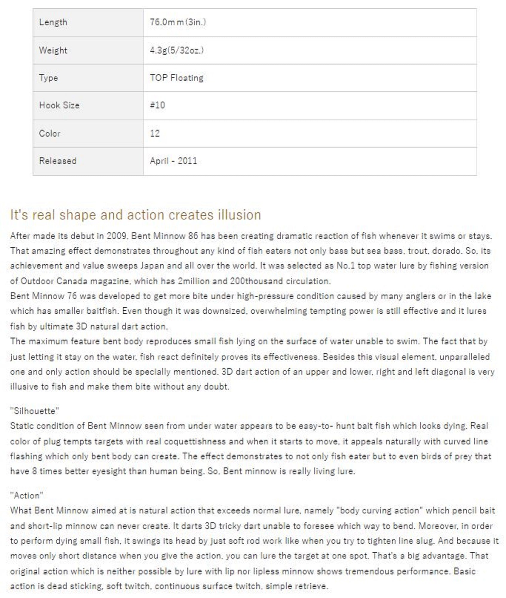 Sale OSP Bent Minnow 76F Floating Minnow Lure G01 (4680)