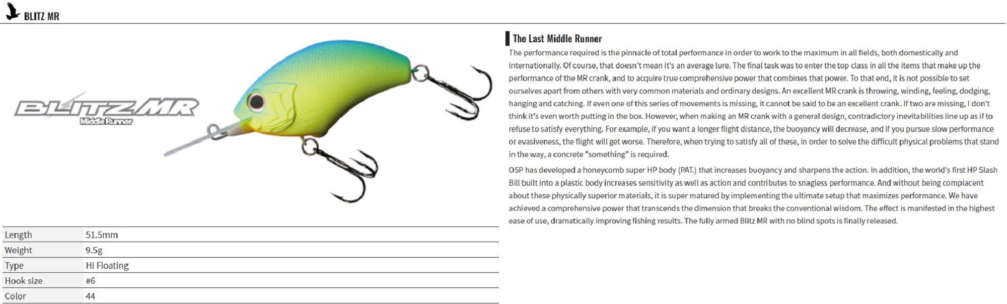 OSP Blitz MR 51.5 mm 9.5 grams Floating Lure T-04 (4070)