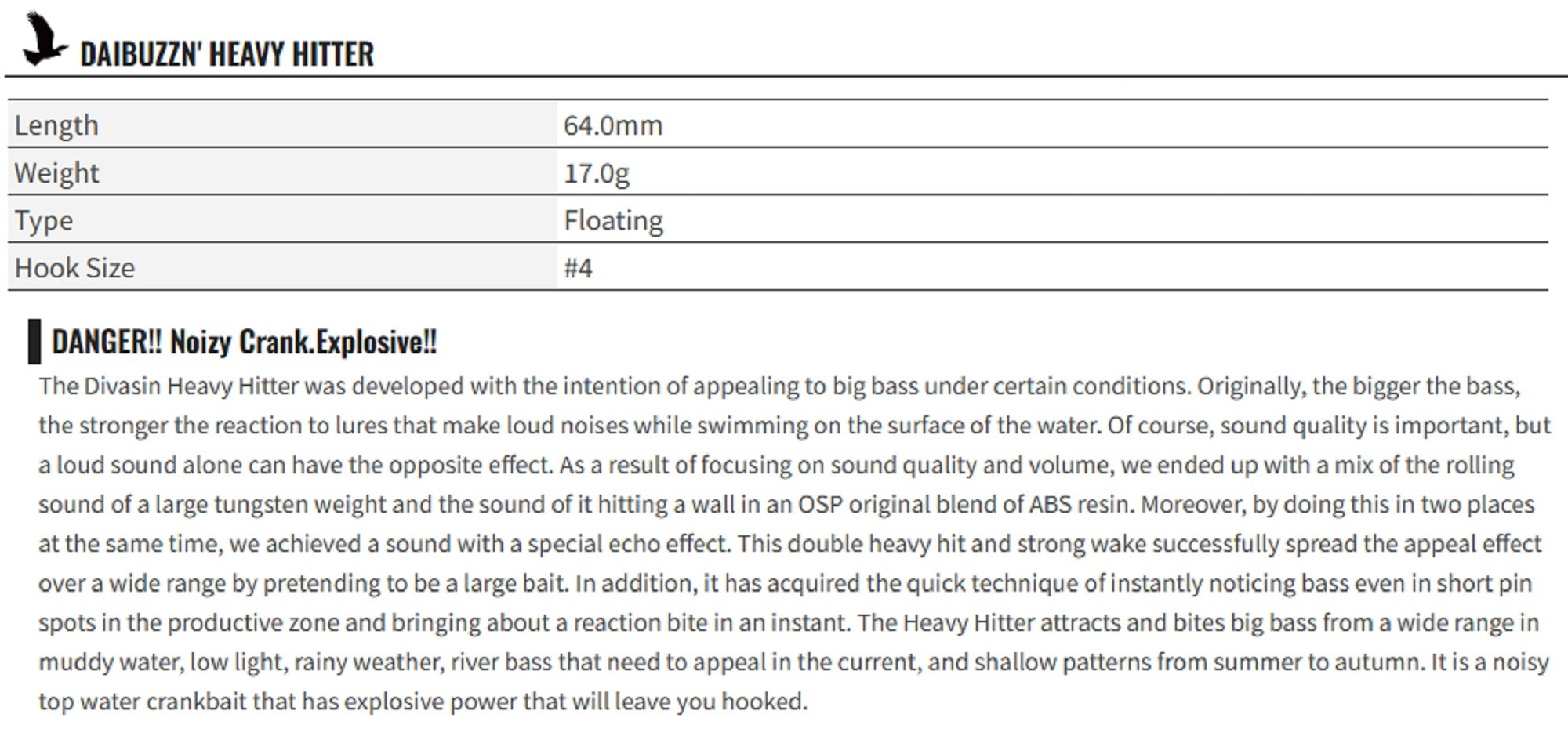 OSP DaiBuzzn' Heavy Hitter 64 mm 17 grams Floating Lure HH-86 (1159)