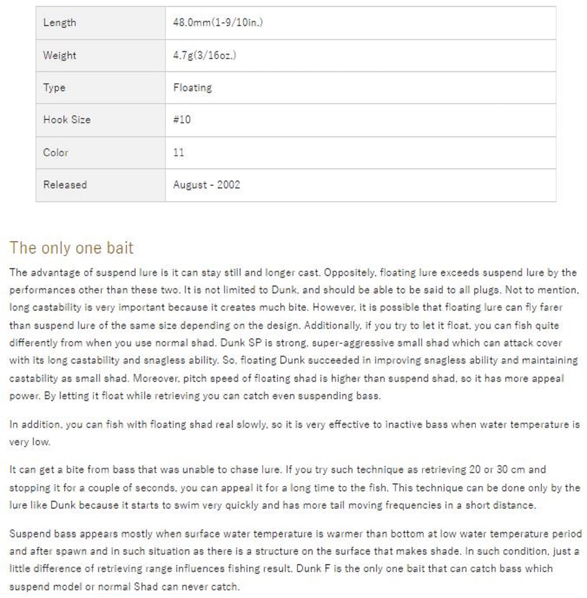 OSP Dunk 48 Floating Deep Diving Minnow Lure M-35 (2885)