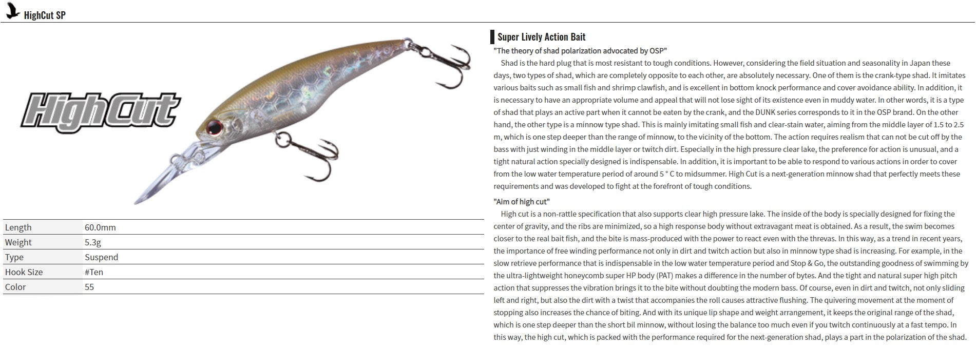 OSP High Cut Silent 60 mm 5.3 grams Suspend Lure KD27 (5450)