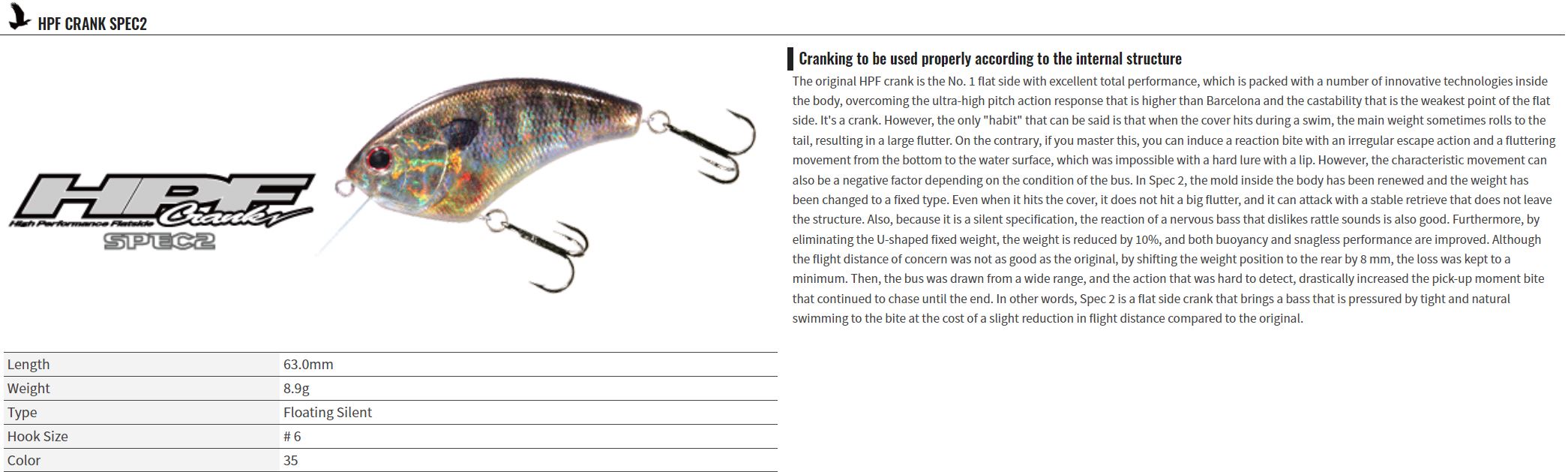 OSP HPF Crank Spec 2 63 mm 8.9 grams Floating Lure H-04 (8315)