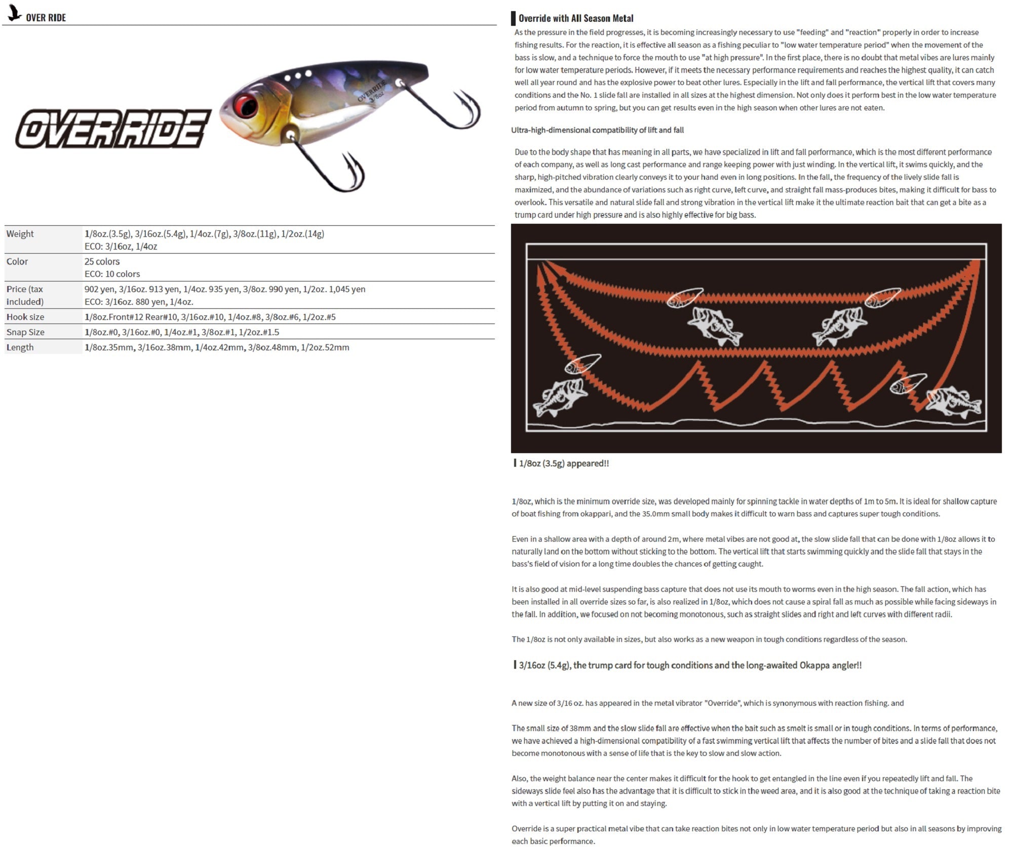 OSP Over Ride Metal Vibration 1/2 oz 55 mm Sinking Lure OR-07 (8450)
