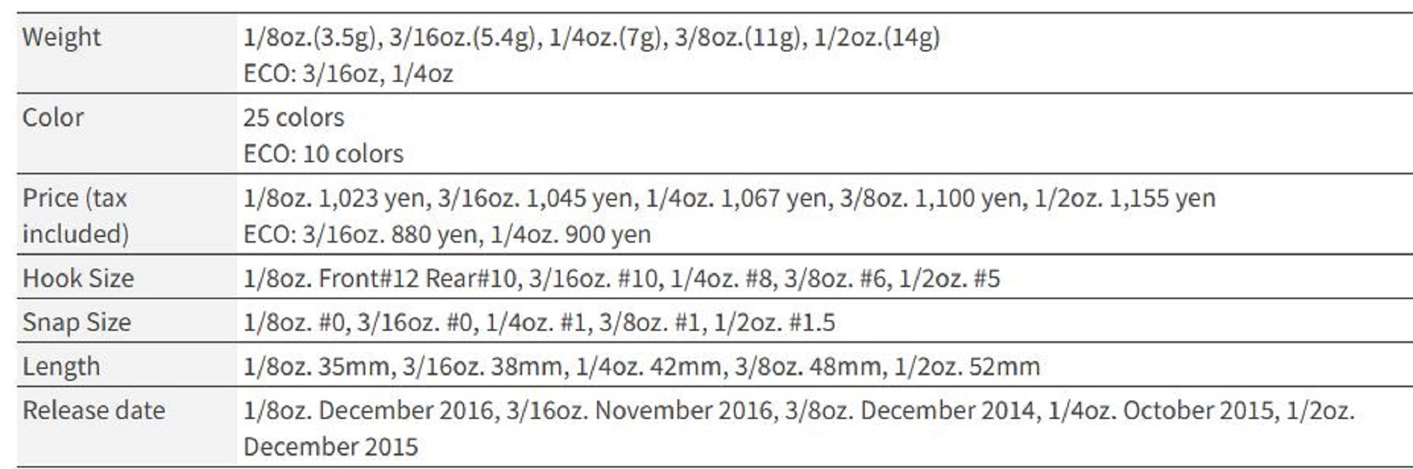 Weight: 1/4 oz
