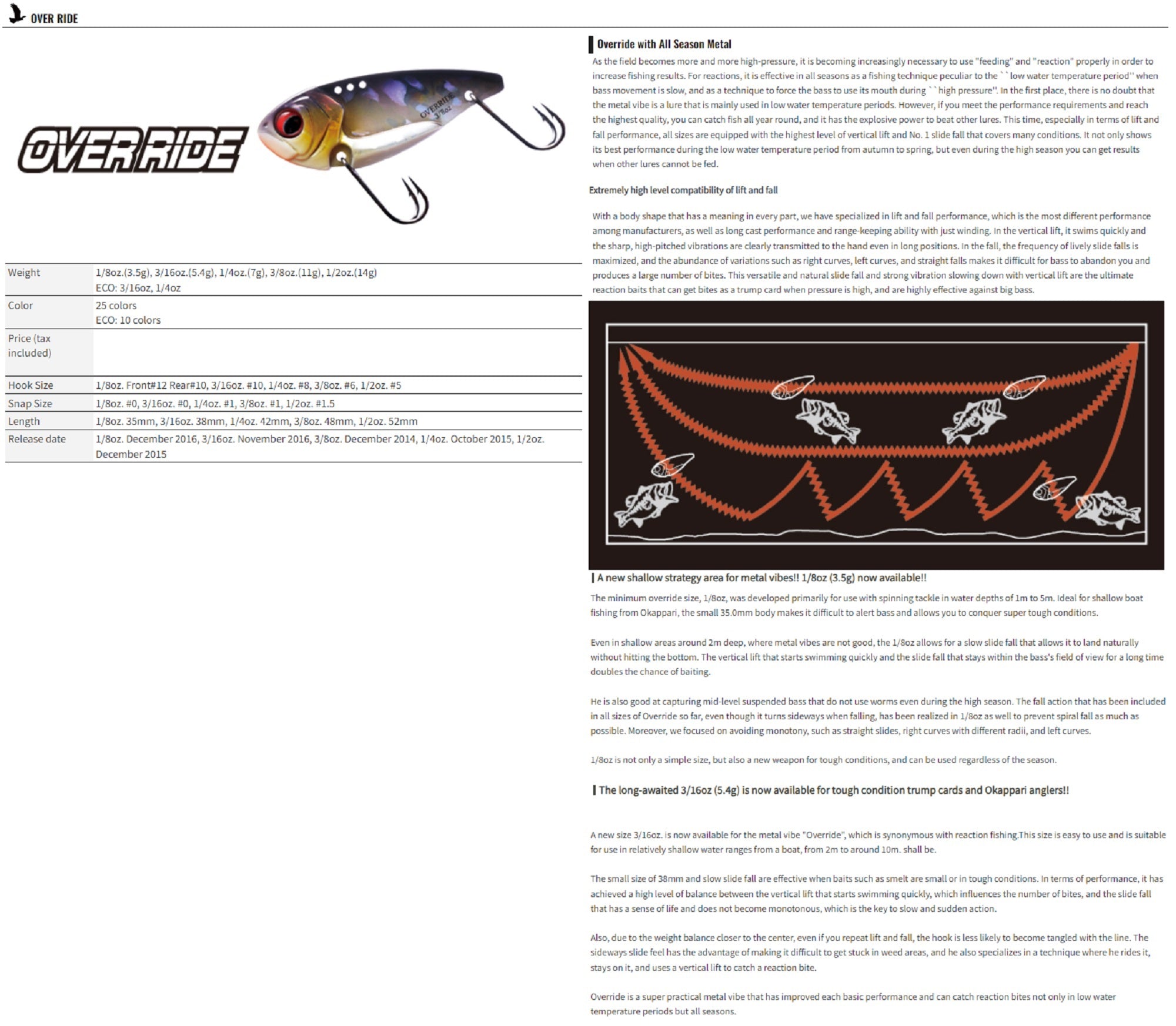 OSP Over Ride Metal Vibration 1/4 oz 45 mm Sinking Lure OR-16 (7187)