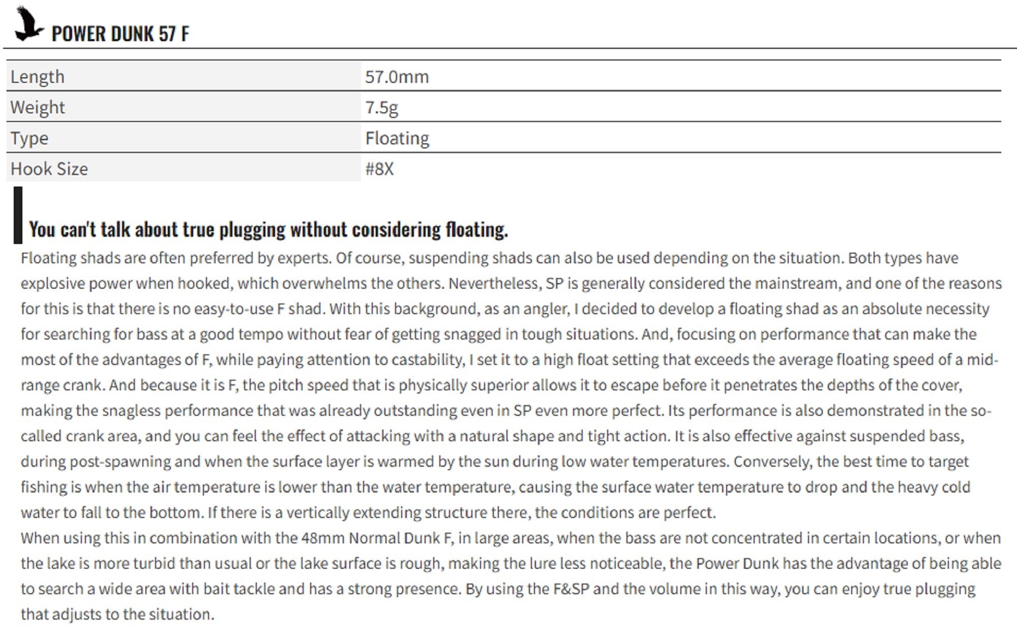 OSP Power Dunk 57 Floating Deep Diving Minnow Lure H-59 (7279)