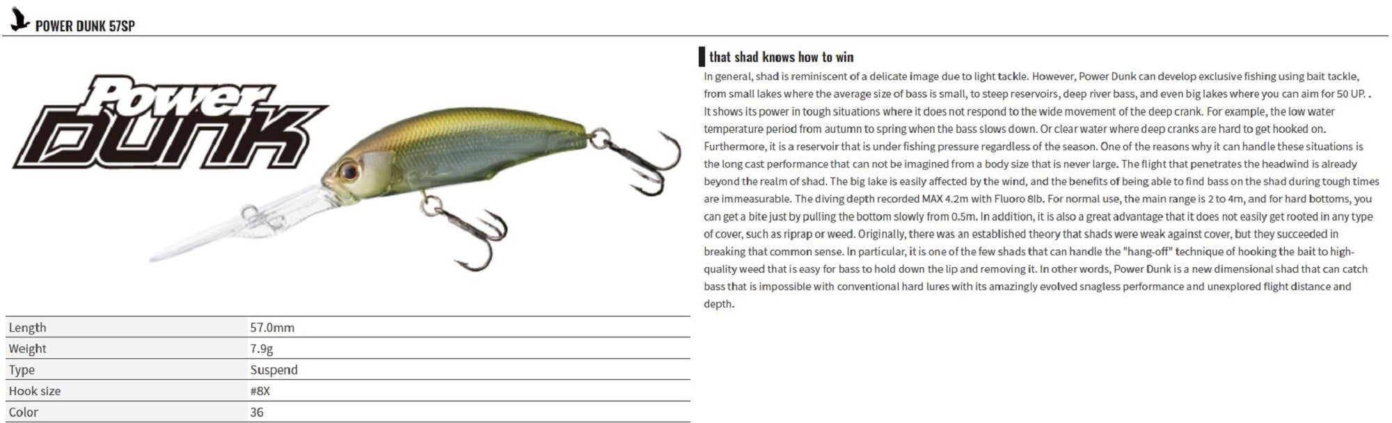 OSP Power Dunk 57 Suspend Deep Diving Minnow Lure HF-76 (2149)