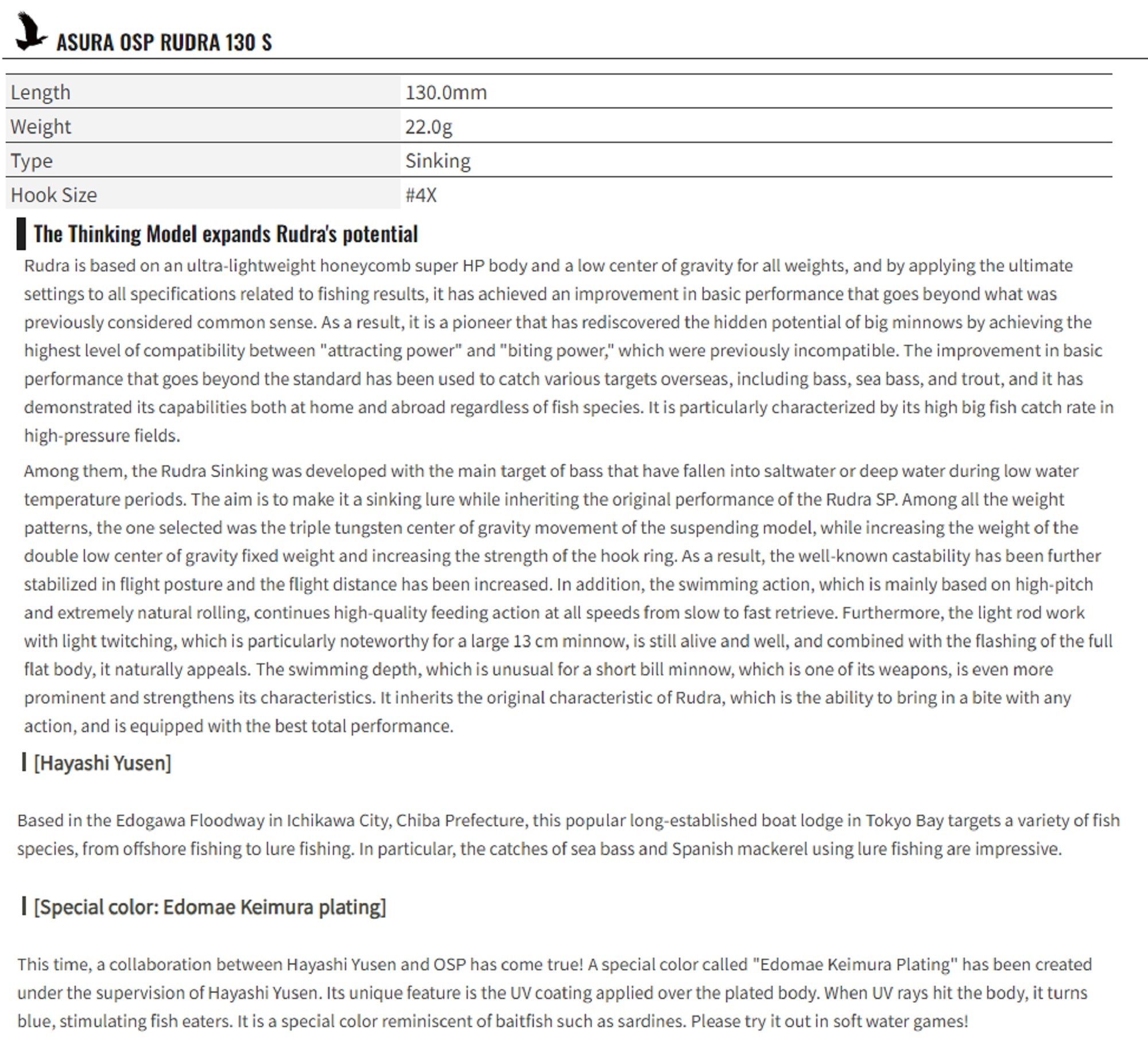 OSP Rudra 130 S Sinking Lure C-79 (8091)