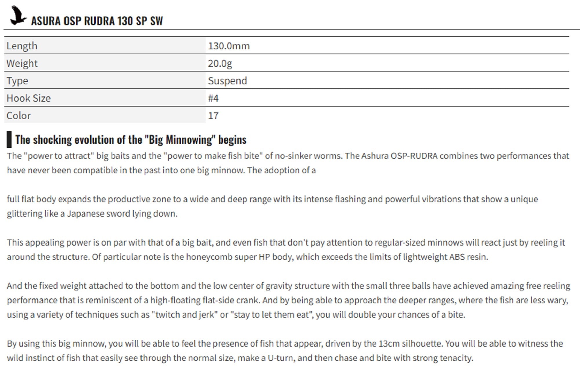 OSP Rudra 130 SP SW Suspend Lure TH-61 (0651)