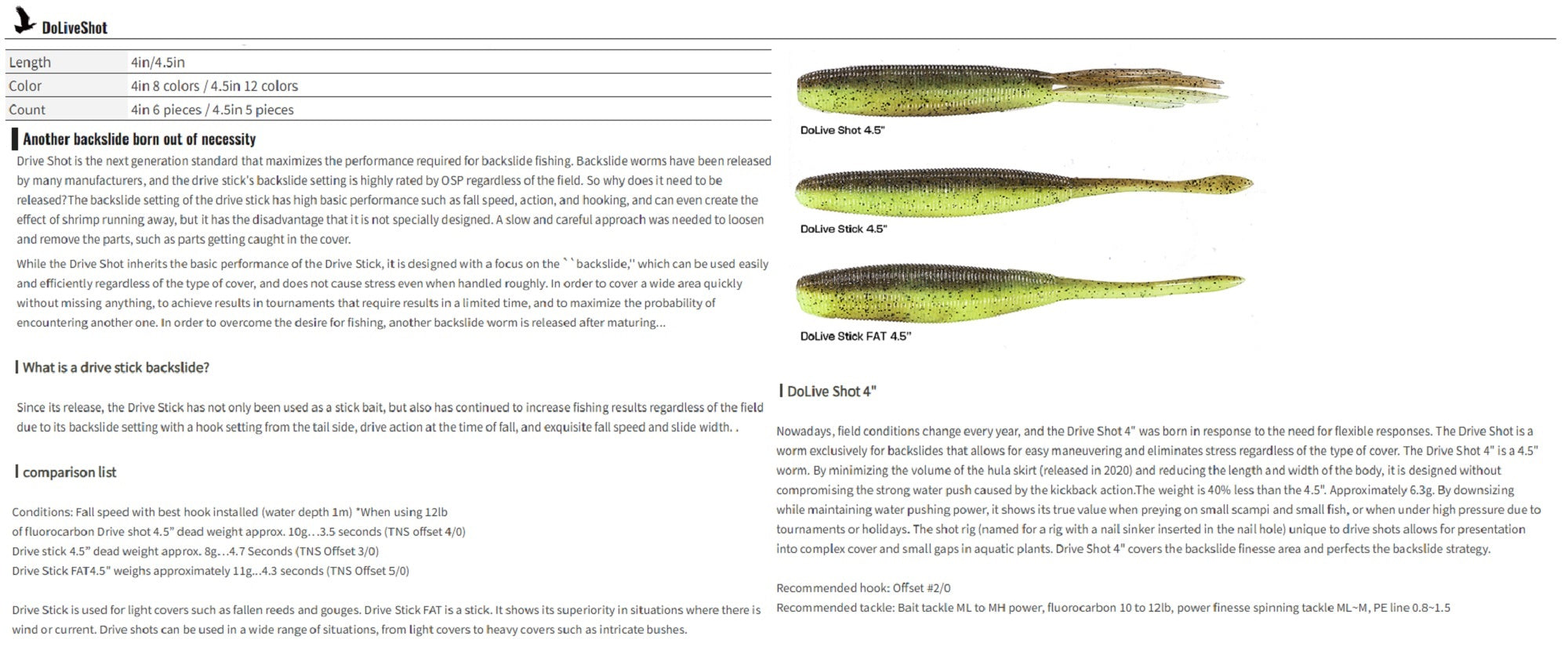 OSP Soft Lure Dolive Shot 4 Inches TW146 (2501)