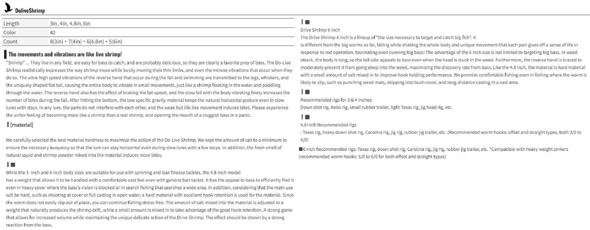 OSP Soft Lure Dolive Shrimp 3 Inches TW-109 (4644)