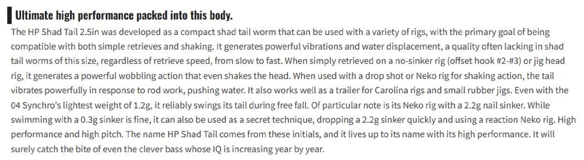 Model:  HP Shad Tail 2.5 Inches