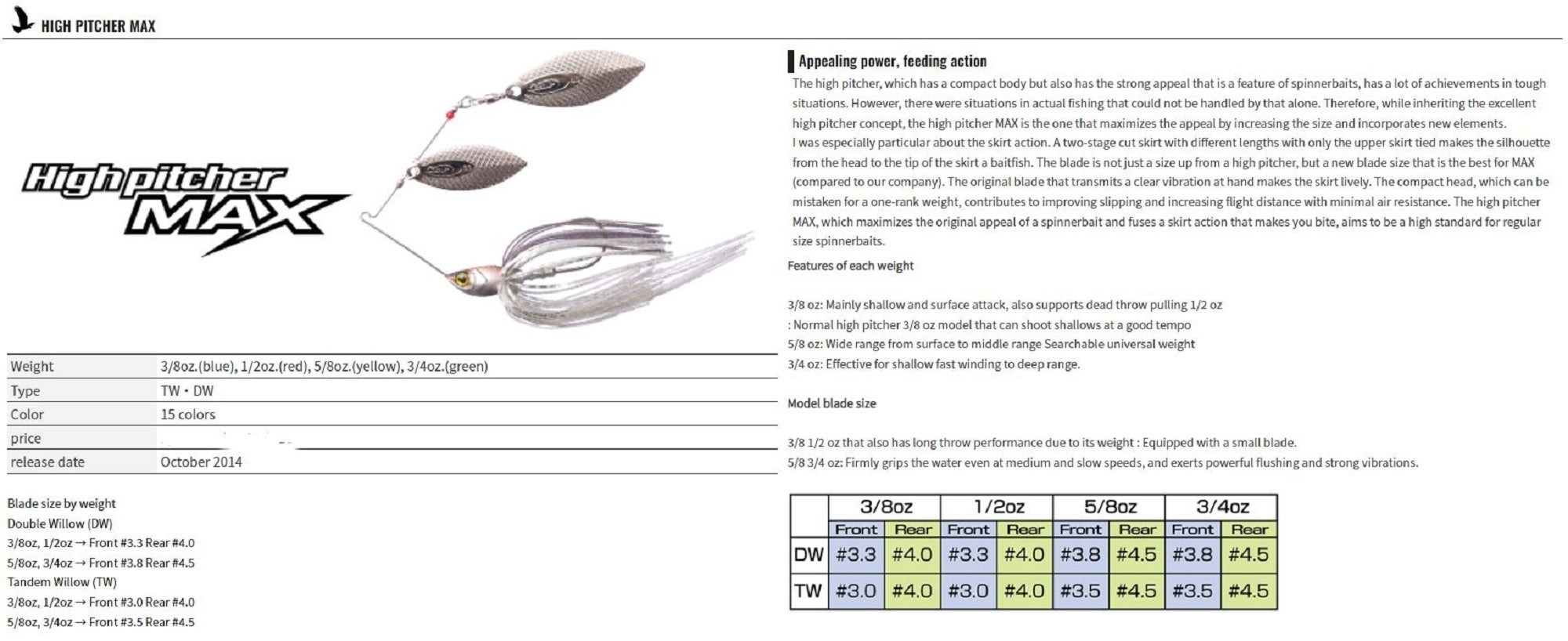 OSP Spinner Bait High Pitcher Max TW 3/4 Oz S-06 (1482)